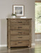 Vaughan Bassett Yellowstone 5 Drawer Chest in Chestnut Natural